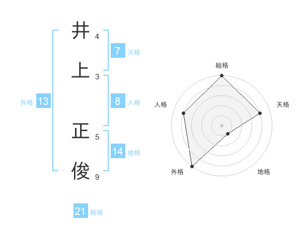 井上 正俊さんの外格は13画の5点!