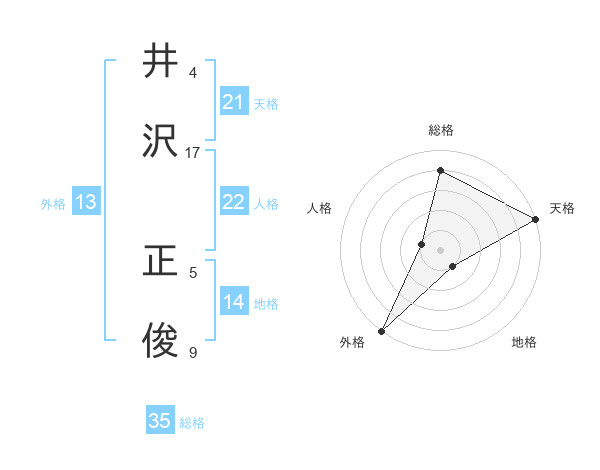 井沢 正俊さんの外格は13画の5点!