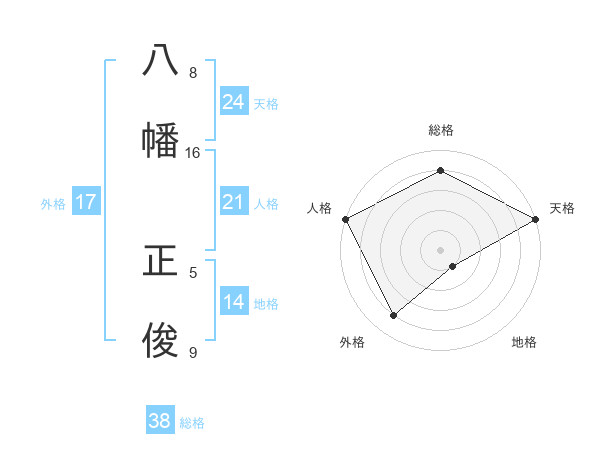 八幡 正俊さんを姓名の画数から五運を鑑定