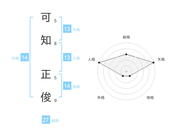 可知 正俊さんの天格は13画の5点!