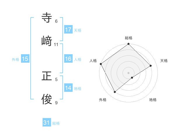 寺﨑 正俊さんの総格は31画の5点!