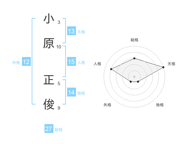 小原 正俊さんの総格は27画の3点!