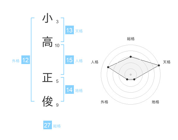 小高 正俊さんの総格は27画の3点!