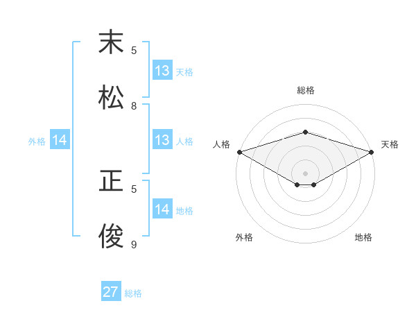 末松 正俊さんの天格は13画の5点!
