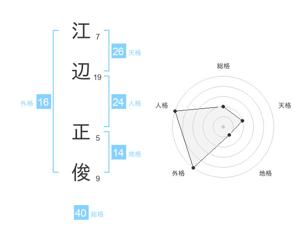 江辺 正俊さんの外格は16画の5点!