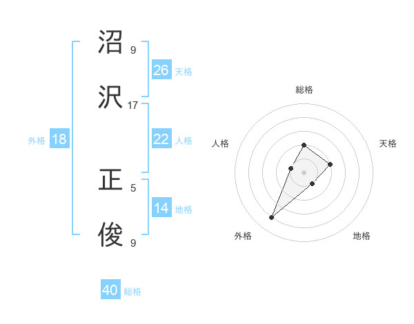 沼沢 正俊さんの総格は40画の2点!