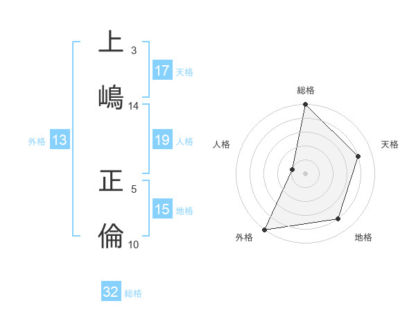 上嶋 正倫さんの総格は32画の5点!