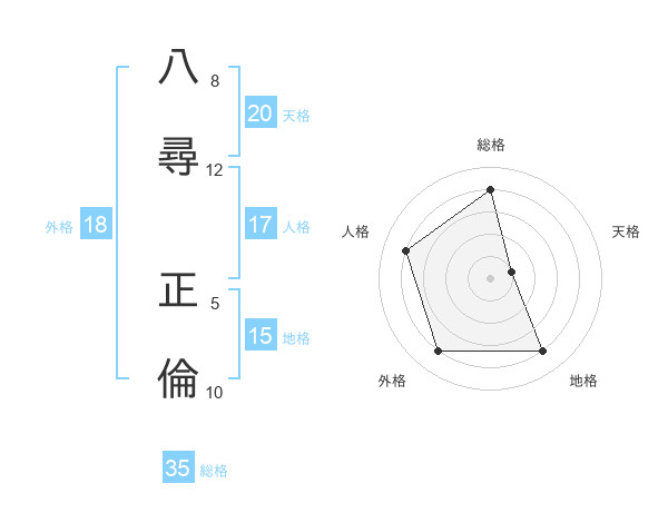 八尋 正倫さんの天格は20画の1点!