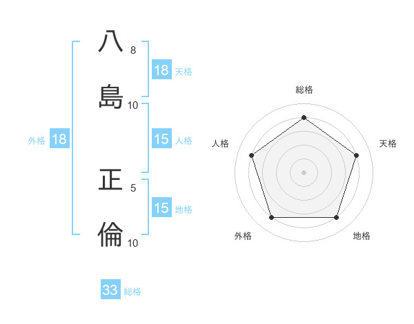 八島 正倫さんの総格は33画の4点!