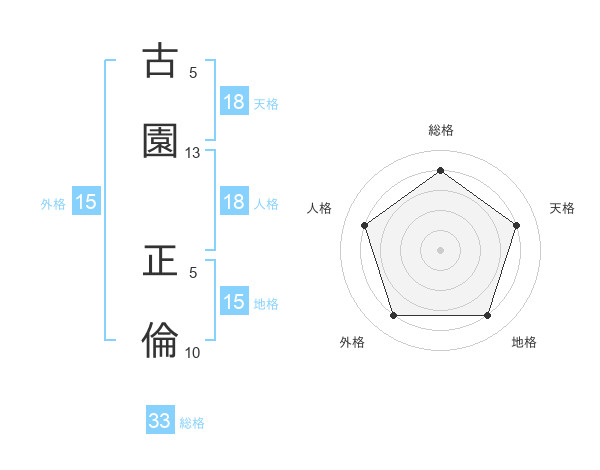 古園 正倫さんの総格は33画の4点!