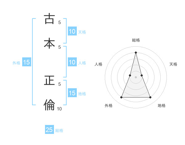 古本 正倫さんの総格は25画の4点!