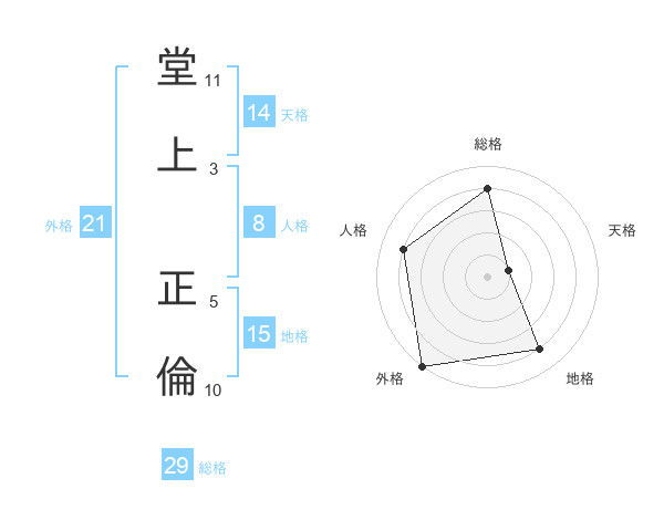 堂上 正倫さんの総格は29画の4点!