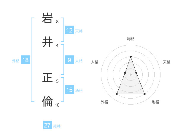 岩井 正倫さんを姓名の画数から五運を鑑定