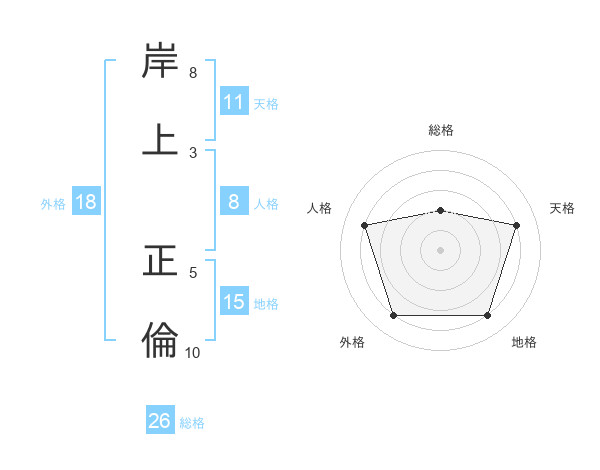 岸上 正倫さんを姓名の画数から五運を鑑定