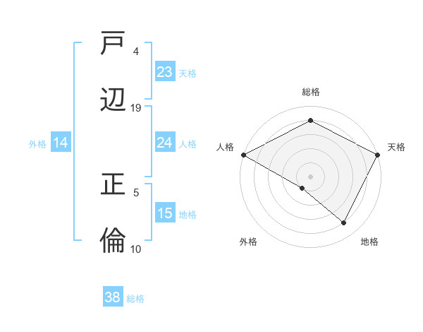 戸辺 正倫さんの総格は38画の4点!