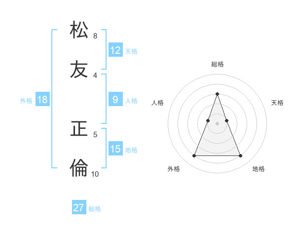 松友 正倫さんの総格は27画の3点!
