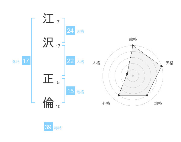江沢 正倫さんの天格は24画の5点!