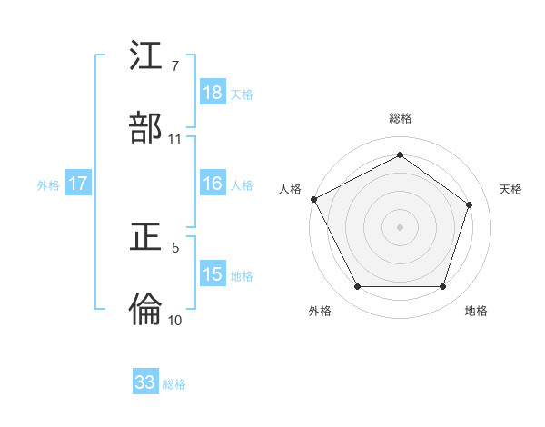 江部 正倫さんの総格は33画の4点!
