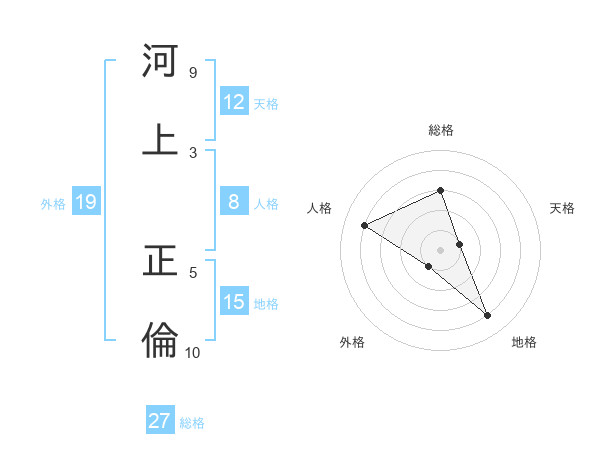 河上 正倫さんの総格は27画の3点!