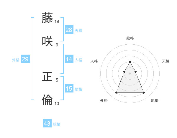 藤咲 正倫さんの総格は43画の2点!