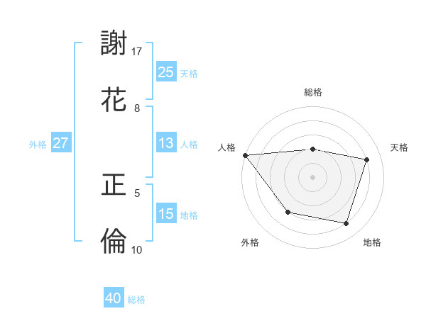 謝花 正倫さんの総格は40画の2点!