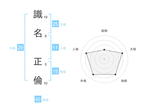 識名 正倫さんの総格は40画の2点!