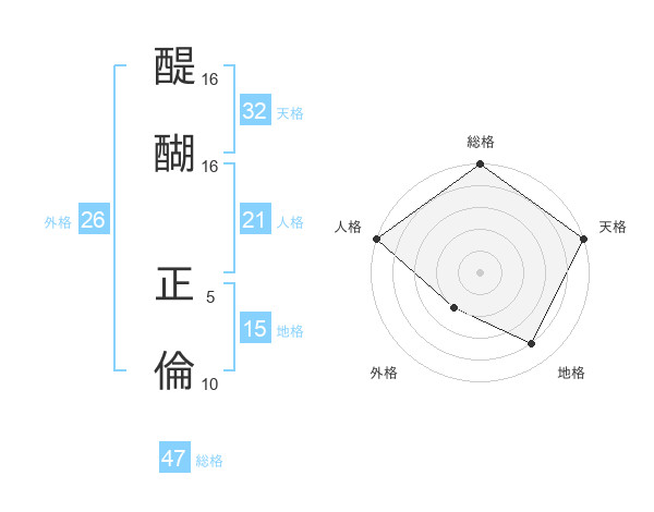 醍醐 正倫さんの天格は32画の5点!
