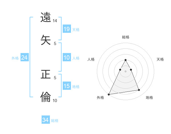 遠矢 正倫さんを姓名の画数から五運を鑑定