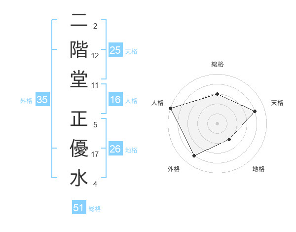 二階堂 正優水さんを姓名の画数から五運を鑑定