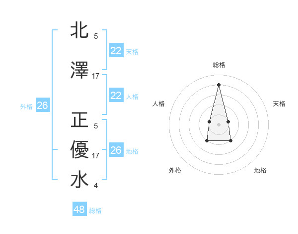 北澤 正優水さんを姓名の画数から五運を鑑定