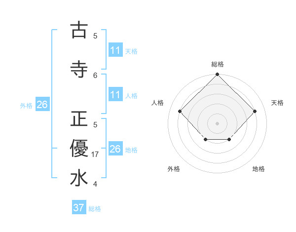 古寺 正優水さんの総格は37画の5点!