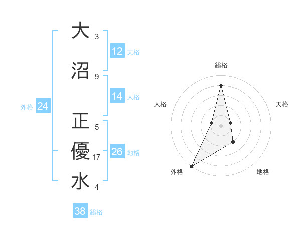 大沼 正優水さんの外格は24画の5点