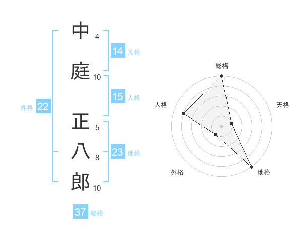 中庭 正八郎さんの総格は37画の5点!