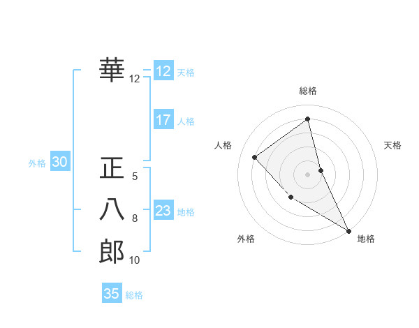 華 正八郎さんの総格は35画の4点!