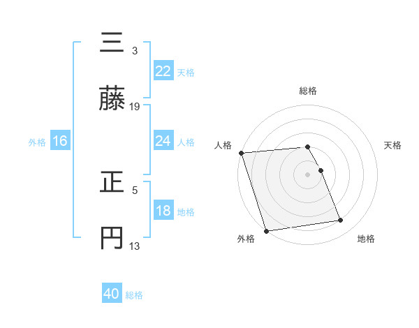 三藤 正円さんの天格は22画の1点!