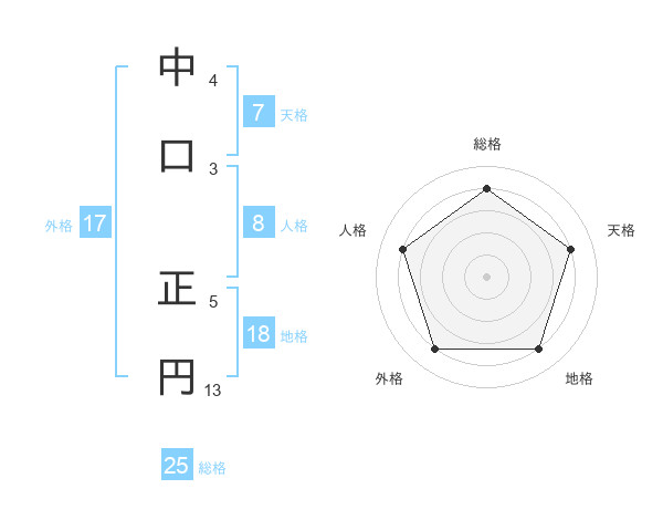 中口 正円さんの総格は25画の4点!