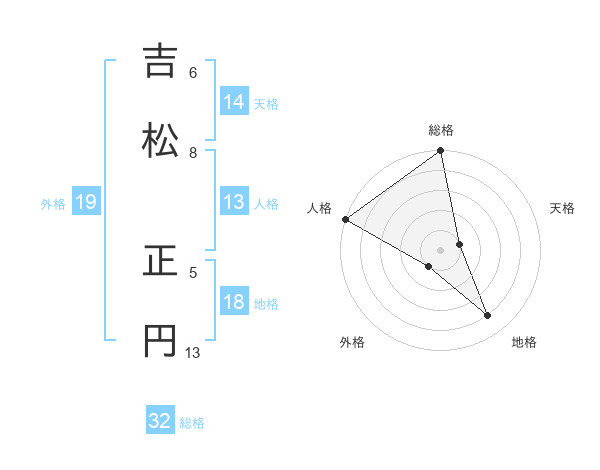 吉松 正円さんの総格は32画の5点!
