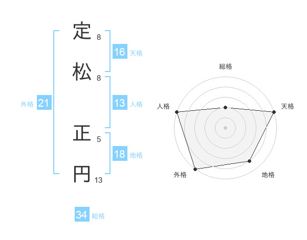 定松 正円さんの外格は21画の5点!