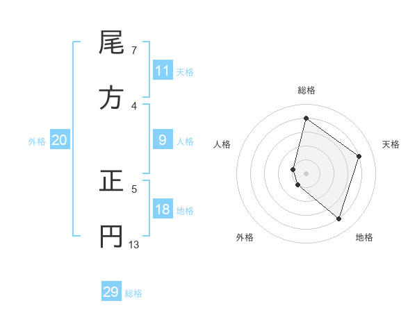 尾方 正円さんの総格は29画の4点!