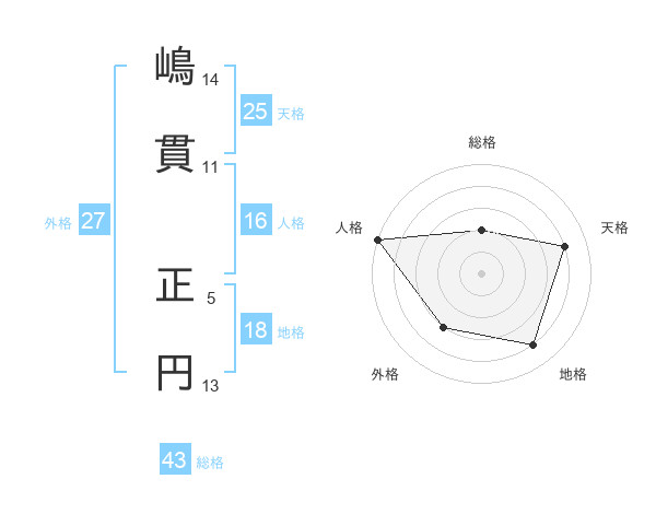 嶋貫 正円さんを姓名の画数から五運を鑑定