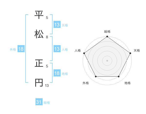 平松 正円さんの天格は13画の5点!