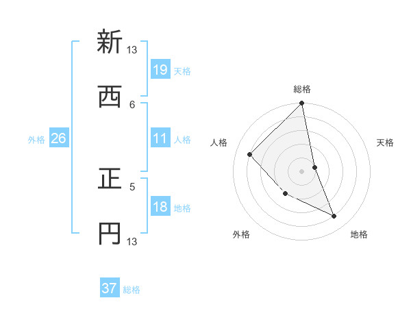 新西 正円さんの総格は37画の5点!