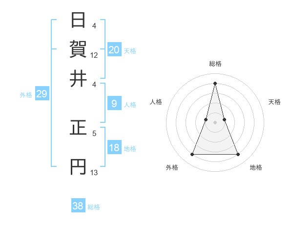 日賀井 正円さんの総格は38画の4点!