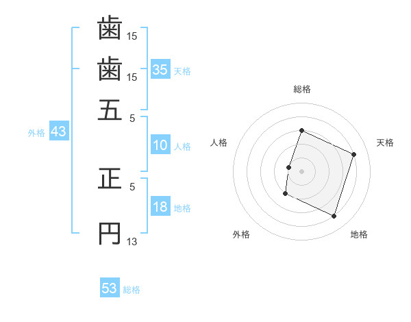 歯歯五 正円さんを姓名の画数から五運を鑑定