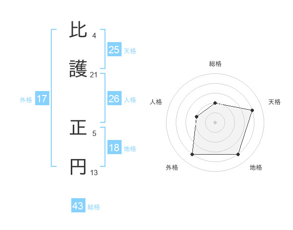 比護 正円さんの総格は43画の2点!