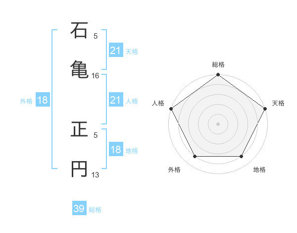 石亀 正円さんの天格は21画の5点!