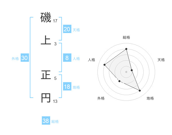磯上 正円さんの総格は38画の4点!
