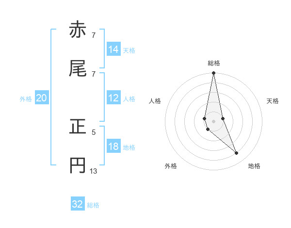 赤尾 正円さんを姓名の画数から五運を鑑定