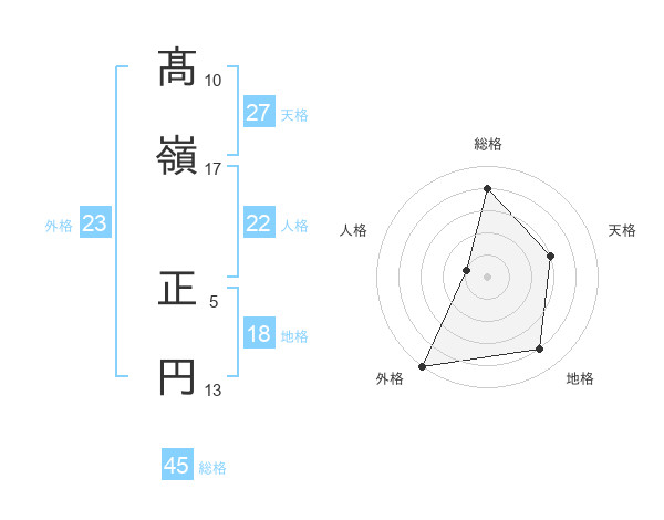 髙嶺 正円さんを姓名の画数から五運を鑑定
