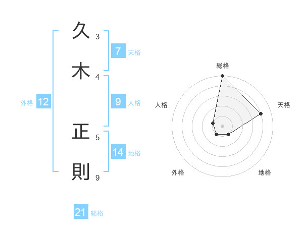 久木 正則さんの総格は21画の5点!